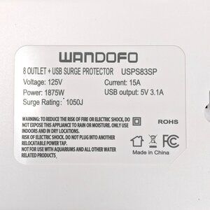 Wandofo Surge Protector Power Strip 8 Outlet 3 USB White 12' Cord Mountable