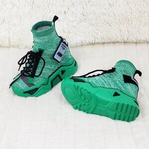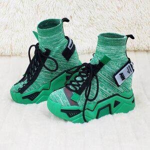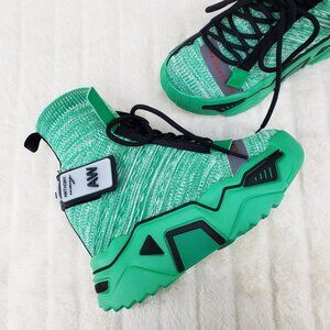 Wang Damson Pull On Platform Sneaker Boots Hi Top 4" Hidden Wedge Green NIB