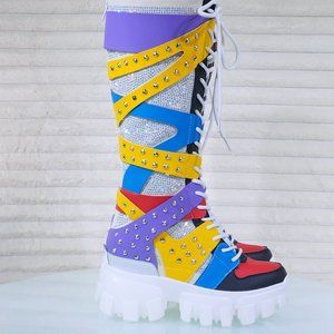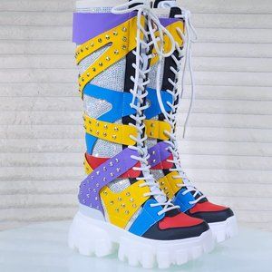 Wang Limited Edition Multi-color Wedge Platform Knee High Sneaker Boots