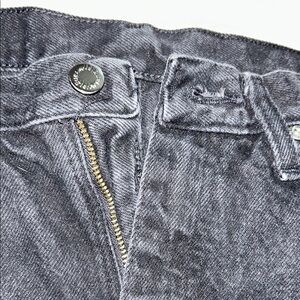 These black jean shorts boast a stylish distressed look with a raw cut-off hem, perfect for a casual day out. The slightly faded fabric adds a touch of vintage appeal, making them a versatile addition to any wardrobe.