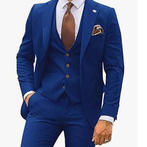 Wangyue Men's 3 Piece Suits, size Large US mens, color blue.