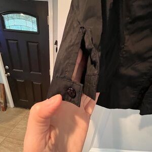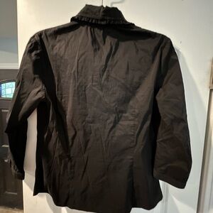 Classic black button-up shirt with a collared neckline. Perfect for formal or casual wear.