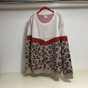 Wanna B Animal Cheetah Print Knit Oversized Long Sleeve Sweater size large. Gently used- two small pulls on bottom right side of sweater see last picture - can easily be pulled back through