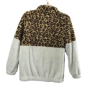 Wanna B Sherpa Fleece Jacket Womens Small Quarter Zip Animal Print Off White
