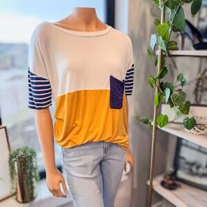 Wanna B, Striped Sleeve Color-Blocked/Spliced T-Shirt, Women's Size Medium