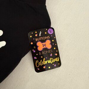 Wanna Hang Dog Shirt Halloween Pet Tee Size L Black Bat Design Buttons and Bones