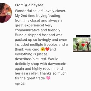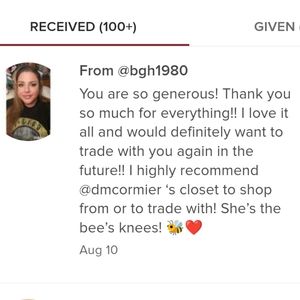 Hey there! See something in my closet you like but short on cash? Send me a message & I will see if you have something I want from closet so we can trade!!! Trading is a great way to get rid of inventory you don't want for stuff you actually want!