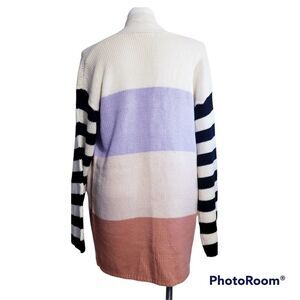 Wanna b Cardigan Sweater L long color block open multicolorstriped Teacher