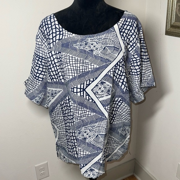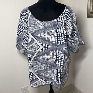 Wanni Fuga blue white pullover lightweight short sleeves top blouse Sz XL - 1X