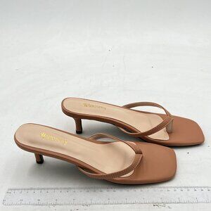 Wansseny Brown Comfy Thong Open Toe Low Heel Flip Flops Slip on Mules Sandals