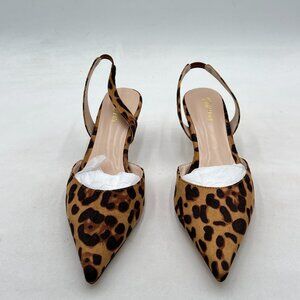 Wansseny Leopard Suede Pointed Toe Slip on Elastic Backstrap Slingback Pumps
