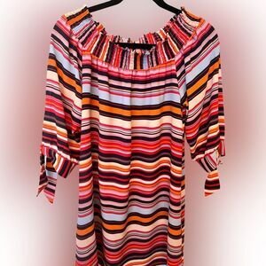 Want & Need Off Shoulder Striped Dress Boho Festival Casual Large Retro