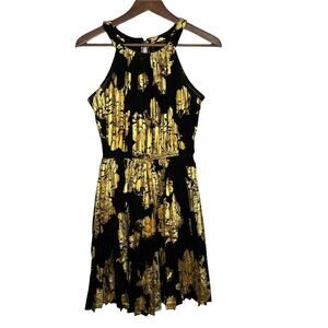 Want and Need Black & Gold Pleated Dress Size Small