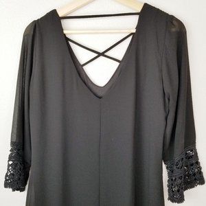 Want and Need Crochet Sleeve Shift Dress Black. Size Medium.