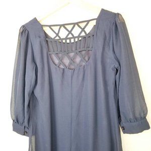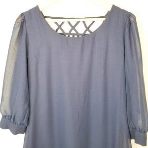 Want and Need Lattice Cutout Shift Dress Navy. Size Medium.