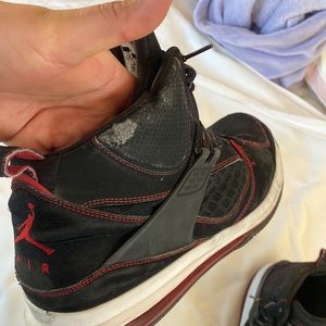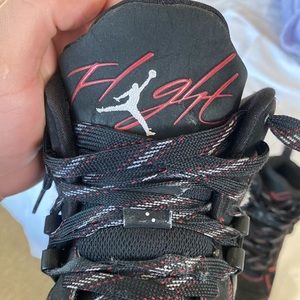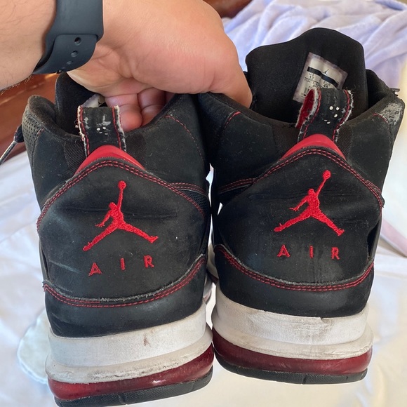 Jordan flight don’t Know the exact model . Some ware and tear as soon in pictures . Very comfortable full length air underneath. Lots of life left in these . Good basketball shoe