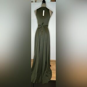 Hunter green skater wrapped midi front to long tail back stretchy dress. Never worn with tag attached.
