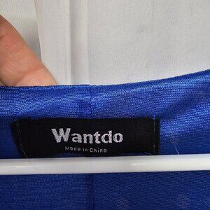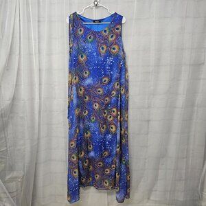 Wantdo Maxi Dress Blue Peacock Sleeveless Chiffon Shift Artsy 14 FLAW