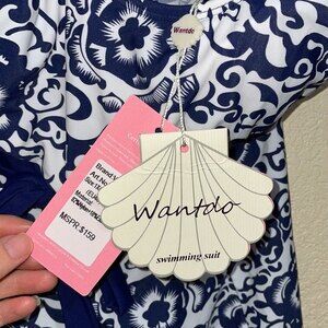 New With Tag beautiful blue and white long swim top. Has a built in padded bra for extra support.