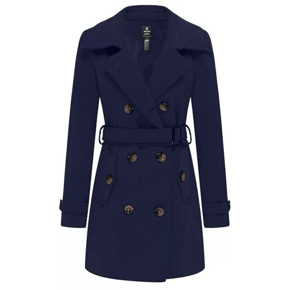 Wantdo Women's Sz XL Navy Blue Double Breasted Winter Trench Jacket Pea Coat