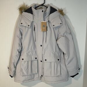Wantdo Women's Winter Coat Gray XL Waterproof Parka Coat Faux Fur Removable Hood