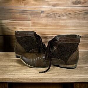 Wanted Women’s 8.5 Brown Leather Lace-Up Ankle Boots Western Cowboy Boho
