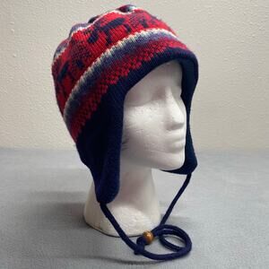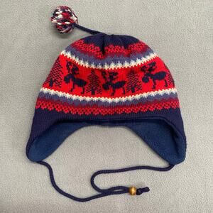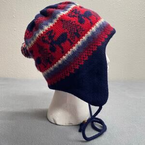 Wapiti Woolies Pom Wool Beanie Fair Isle Moose Tree Winter Ski Lodge Cabin Retro