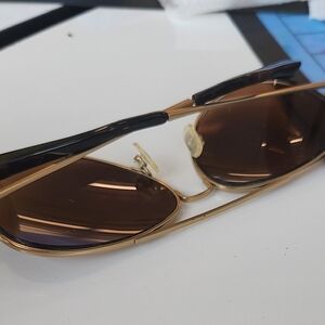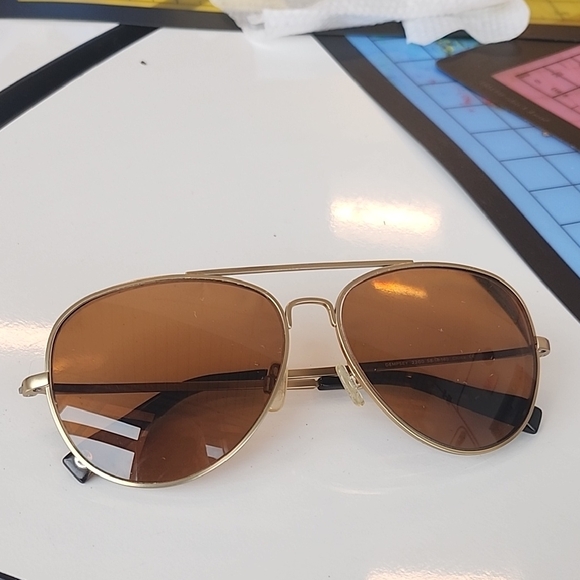 Stylish gold aviator frames. Brown lenses for a classic look. Perfect for any occasion. these are not perfectly even. they have a power perscription which is unknown. you will need to replace the lense with your own perscription. this salenis for the frames only