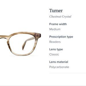 Warby Parker Turner frames with 1.5 reader lenses. Lenses are scratched from being in purse but otherwise perfect condition. Lenses can easily be swapped out.