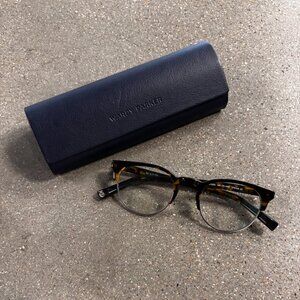 Model: Ripley 3200 Condition: Pre-Owned: In excellent condition. Has prescription lenses in them currently, but can easily be swapped out by your optometrist, Warby Parker, or any online lens manufacturer. Color: Whiskey Tortoise&Silver Material: Metal & Plastic Shape: Round Browline Lens Width: 48 mm Bridge Size: 21 mm Lens Vertical: 40 mm Temple Length: 140 mm Overall Width: 130 mm Frame Vertical: 43 mm Comes with original Warby Parker case.