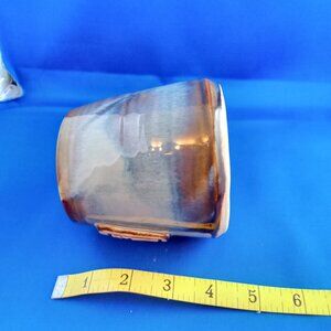 Wardell hand made pottery blue brown mug LAUGH SING DANCE