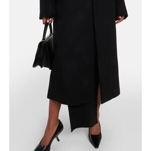 Wardrobe.NYC creates capsule pieces that are tailored with care from high-quality materials. Made of virgin wool, this single-breasted coat has a longline silhouette with padded shoulders, multiple pockets, and a lined interior.