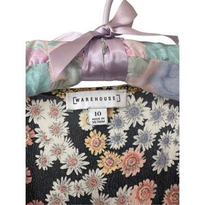 Warehouse Black Floral Cottage Button Up Mini Dress | Size 10