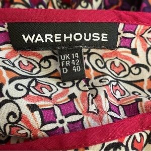 Warehouse x ASOS Magenta and Voilet Batik Print Woven Sheath Dress, Size 10