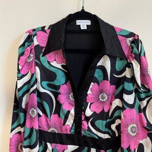 Elegant long sleeve dress featuring vibrant floral patterns. Perfect for any occasion, great wedding guest outfit.