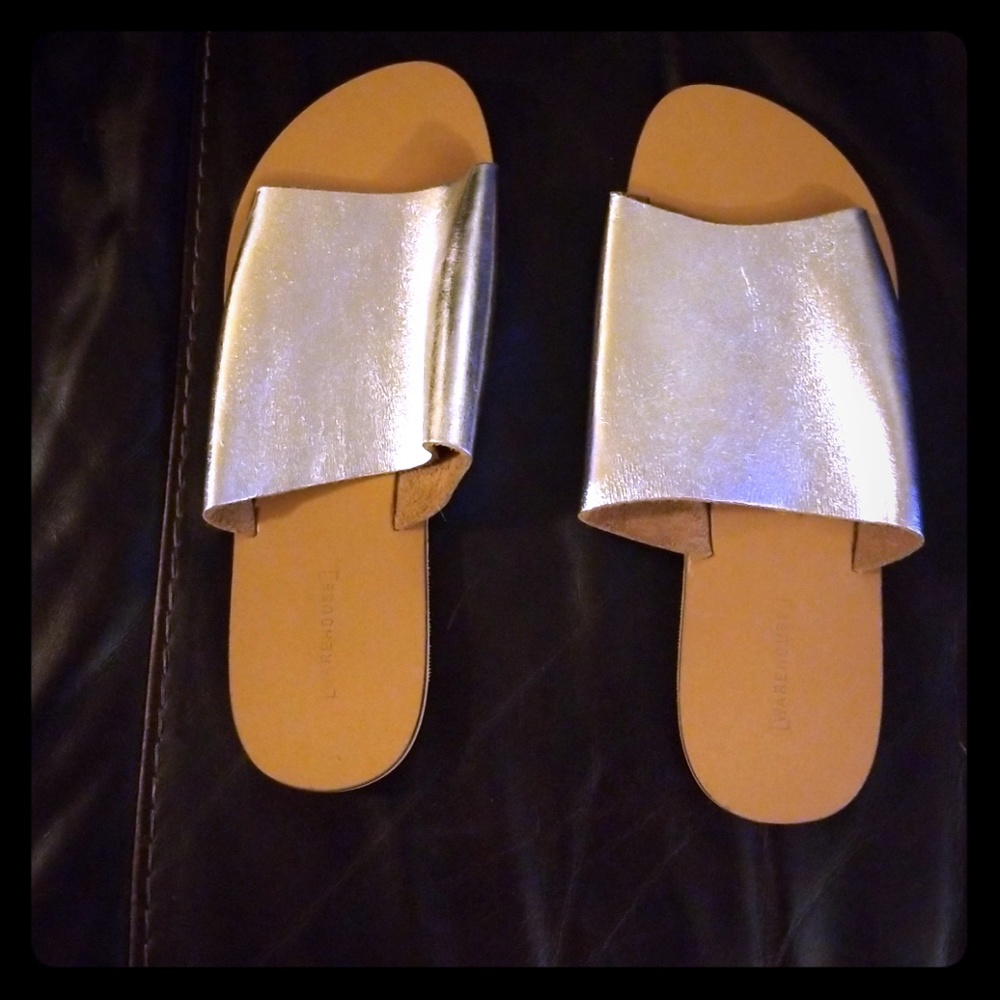 Silver slide by Warehouse. Worn 1x, size 40, good condition.