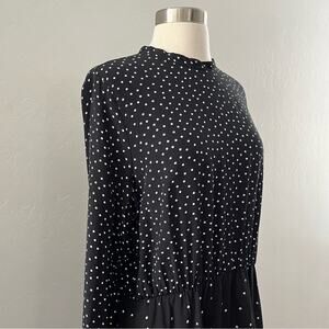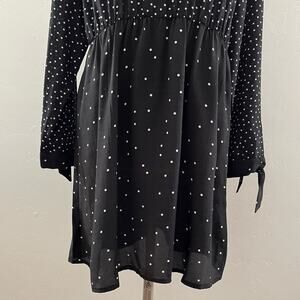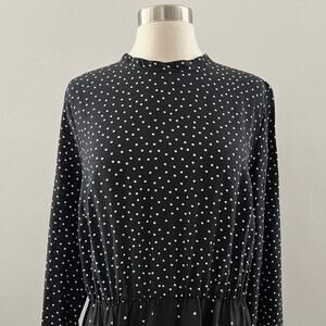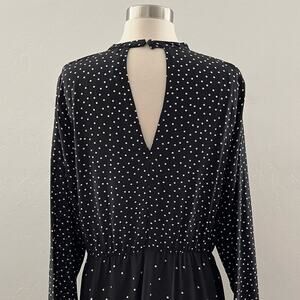 Warehouse UK Polka Dot Dress Women's Size 12 Black Cut-Out Long Sleeve Stretch