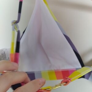 Warehouse Vertical Rainbow Bright Stripe Bikini Top Size US 4