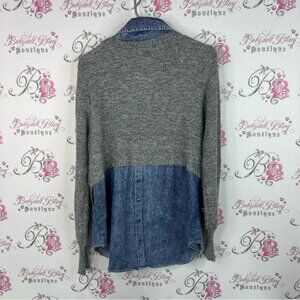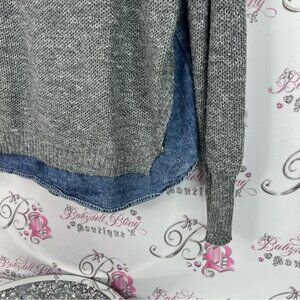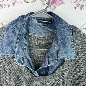 Stylish gray sweater featuring a unique denim collar. Perfect for a casual yet sophisticated look. Xl.
