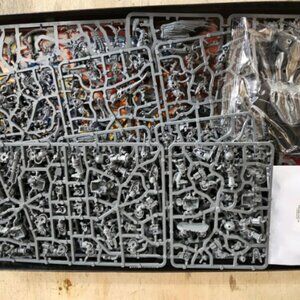38x plastic push-fit Citadel miniatures – This box is stuffed with loads of miniatures to build, paint, and play with. There are two starter forces in the box, with leaders, troops, and support elements – all designed to be assembled without glue, so you can get stuck in with minimal fuss. These miniatures are all supplied with their appropriate bases, and the box features: