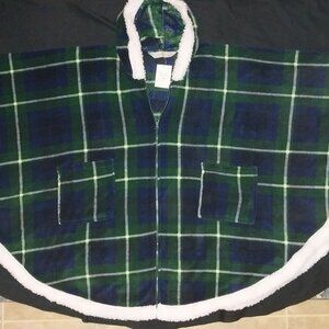 Warm + Cozy Hooded Plaid Poncho with Faux Fur Trim Size L (NWT)