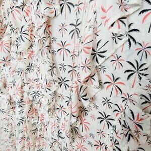 Warm Palm Trees 100% Viscose Floral Ruffles Midi Dress