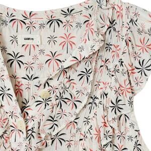 Warm Ecru Palm Trees Floral Ruffles Midi Dress - warm 1 - Size S