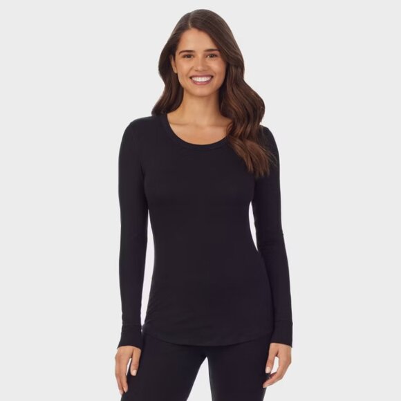 Warm Essentials Cuddl Duds Women's Smooth Stretch Thermal Scoop Neck Small Black