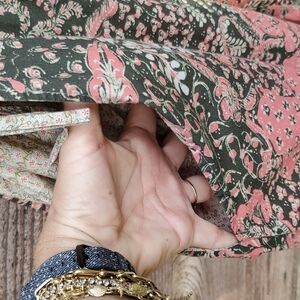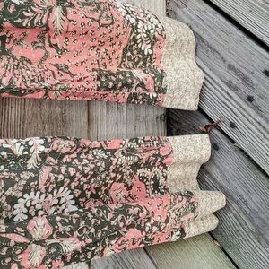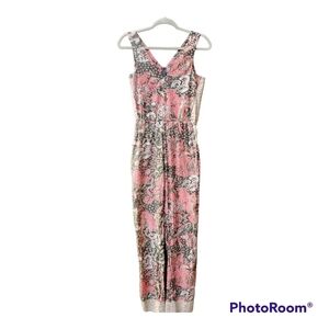 Warm Floral Pink and Green Sleeveless V-Neck Printed Cotton Jumpsuit Size 0