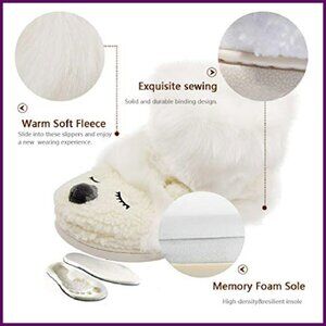Warm Fluffy Slippers with Memory Foam, Anti-Slip Sole, Size 4-9.5
