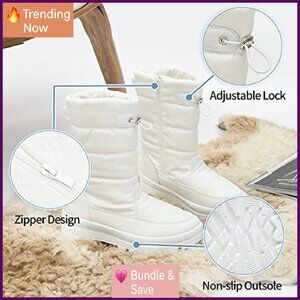 Warm Fur Lined Snow Boots Water Resistant Mid Calf Winter Hiking