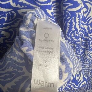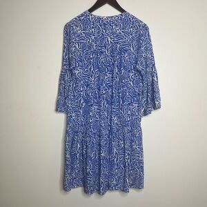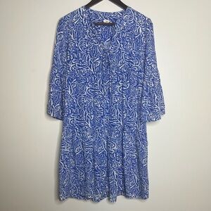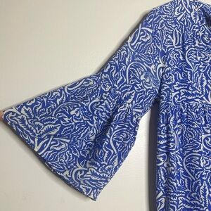 Blue printed silk (100% Silk). Shift. Three-quarter sleeves. V-neckline. Pull on styling