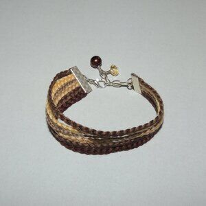 Warm Mocha Tones Braided Bracelet Handmade Multi-Strand Cuff 6.5" to 7.5"