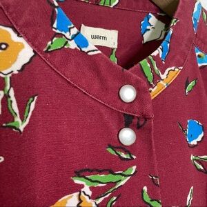 This crisp day dress from Warm gains a touch of bohemian charm from a vintage-inspired floral print and imitation-pearl snaps. Size 3 converts to a US Large. 20” armpit to armpit. 47” length.